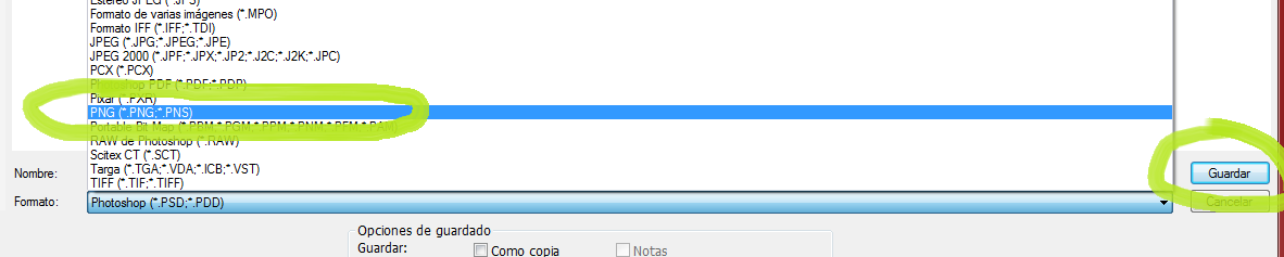 Finally, we will choose the option of "PNG", it can not be another one since it will not leave the transparent background. To finish, Save.