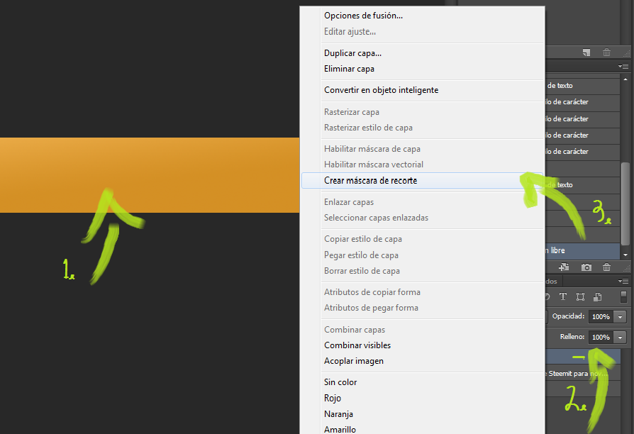 We will apply the gradient on the new layer that we will have created, then go to this layer to double click it, a series of options should appear. We will go to "Create clipping mask"