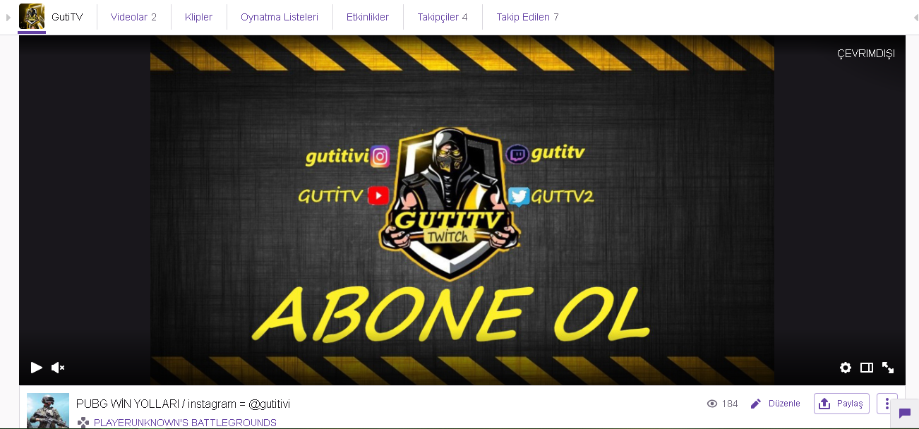 * Hi friends, I will introduce my twitch channel to you. Twitch has surpassed many sectors and has gained a great reputation in social media. And at the same time we are making money from people who are abona. You can support me by subscribing to my Twitch Channel. There is also a connection system in twich. This is the way to send the desired amount of money to the publisher you want. This job is being executed with bynogame. My nickname in social media is GUTİTV. I'm going to leave a link to my twitch channel and a bynogame donation link to support me. Also here will be the review video of my twitch channel. I'm recording my social media accounts here. I'm going to be broadcasting on DLive. Thank you...