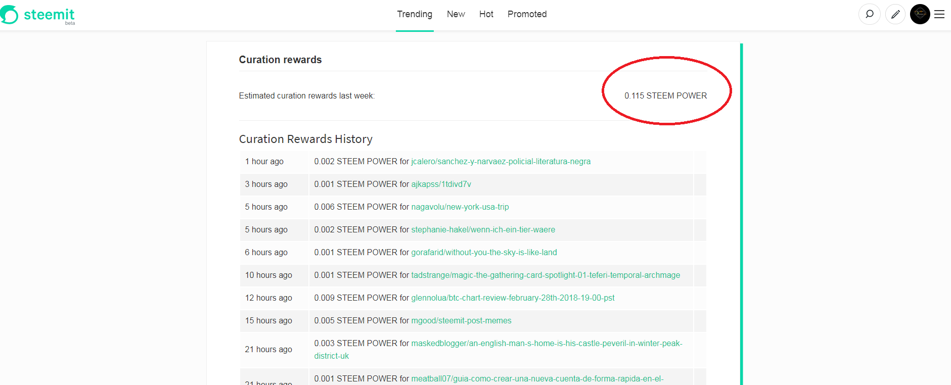 - Curation earns you: 1 Steem power