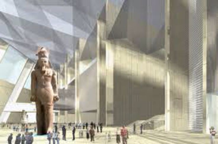 大埃及博物馆位于开罗以西几英里处,距离吉萨金字塔仅两公里,占地 117 英亩。 恒汉兵公司在博物馆建筑设计竞赛中获胜。 Atelier Bruckner 赢得了博物馆展览。 建筑工程由Orascom Construction and Industry 与Besix 的联盟中标,该博物馆还包括儿童博物馆、教育中心、手工艺中心、教育班、太阳船专用博物馆和第一个一个悬挂的方尖碑的领域。根据一位波兰科学家的数学理论,该理论讨论了三角形形状的无限划分,每个范围在金字塔的象征框架中被划分为较小的三角形,博物馆建筑位于面积10万平方米,其中博物馆展示4.5万平方米,其余区域包括埃及学科学图书馆、会议中心、研究中心、修复实验室、3D影院、专用场所为游客提供服务,例如餐厅、出售复制品和礼品的商店以及停车场。