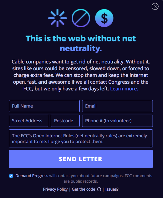 If you support Net Neutrality you should now go to any of these websites and support it.