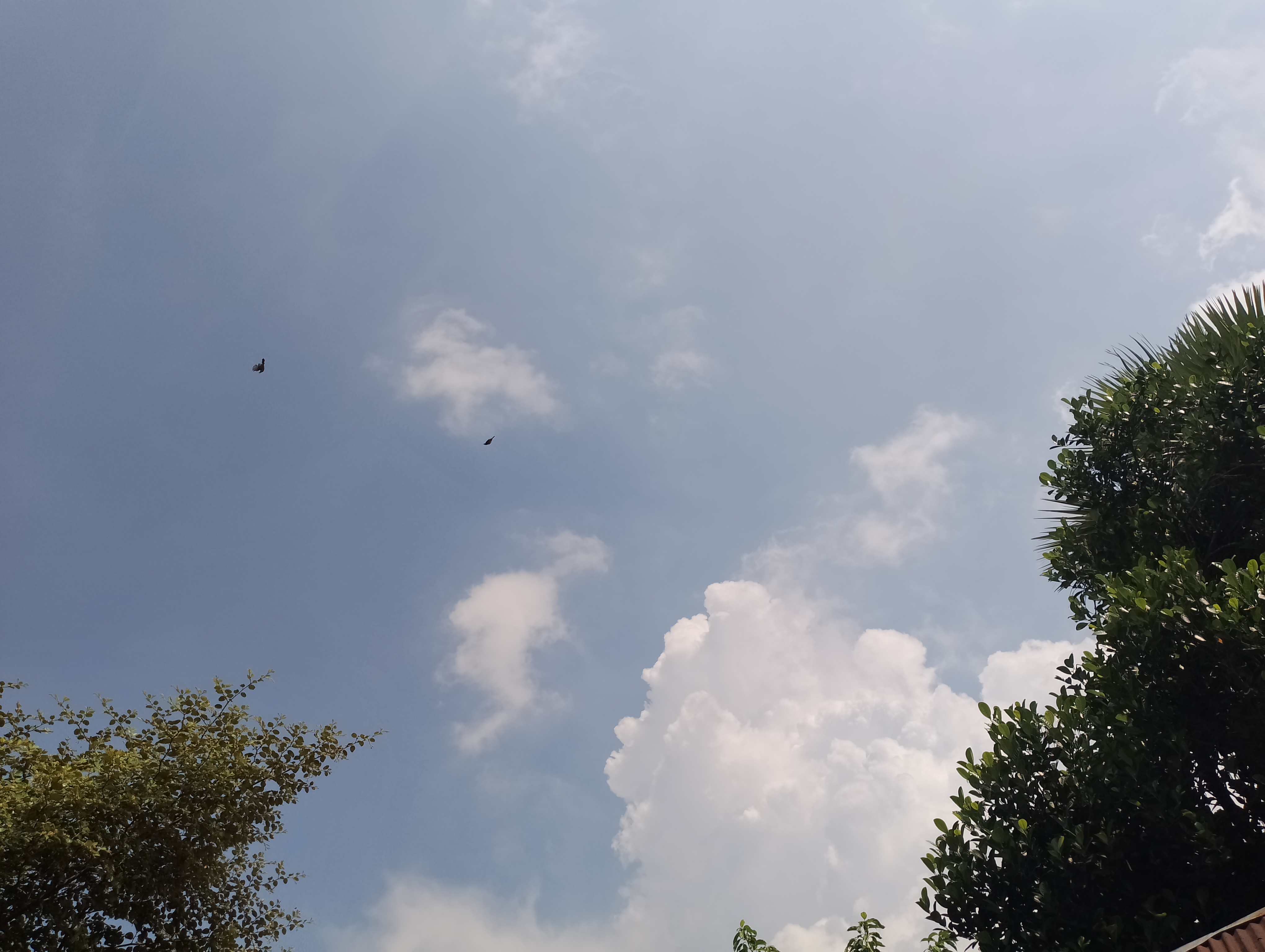 খোলা আকাশের মাঝে সাদা মেঘের ভেলা সাথে প্রকৃতিক পরিবেশ।