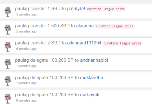 Meskipun telat, saya tetap ingin mengucapkan terima kasih kepada @paulag yang telah mendelegasikan 100 SP kepada pemengang kontes dalam setiap minggu. Meski hanya beberapa minggu delegasi SP itu diberikan kepada pememang, saya merasa senang dan bahagia karna dapat memenangkan liga kurasi tersebut.
