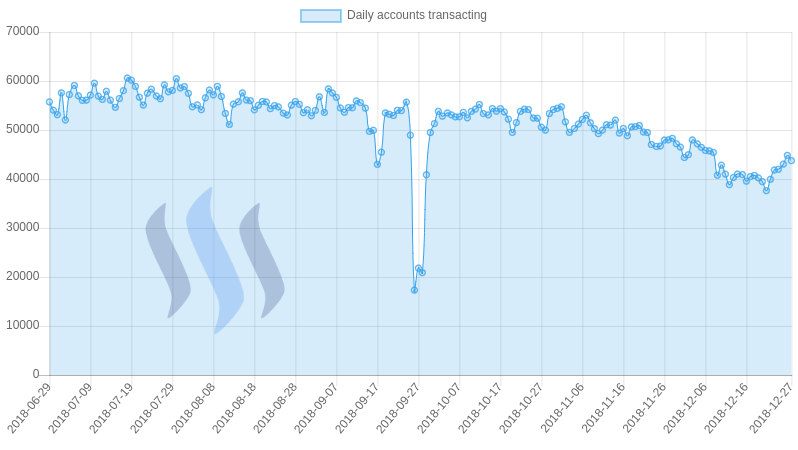 A 'transacting account' is a Steem account that made at least one transaction on the Steem blockchain. This can be a vote, post, comment, transfer, power up or sbd conversion. Users who only read from the Steem blockchain without interacting are not included. The actual number of 'Active users' is therefore much higher than the accounts transacting.
