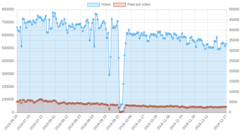 | Date | Votes | Paid bot votes | Percent bot votes |