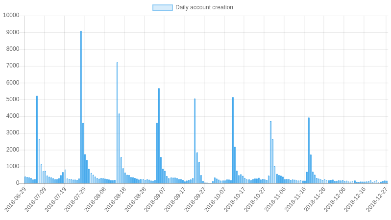I see lots of transactions to exchanges and no peeks for the new account creations anymore.