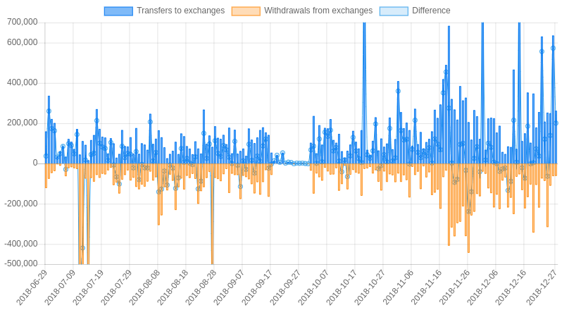 | Date | Transfers to exchanges | Withdrawals from exchanges | Difference |