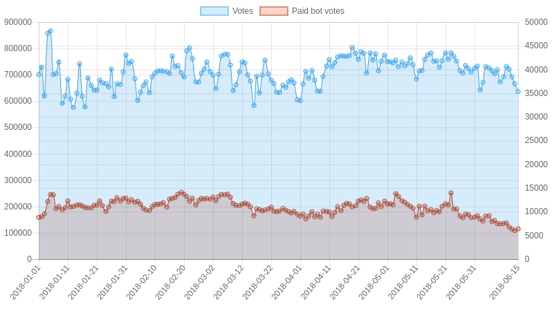| Date | Votes | Paid bot votes | Percent bot votes |
