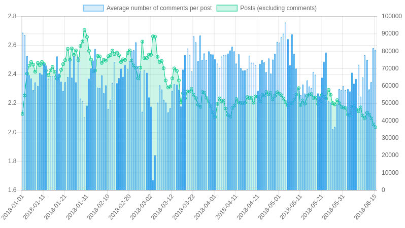 Hmmm.... The daily number of posts are going down, but the number of votes stays stable, it seems... That should be a good thing for those of us who work hard to publish quality content, no? I mean, with more votes per post.. Very interesting to see these graphs. Thanks!