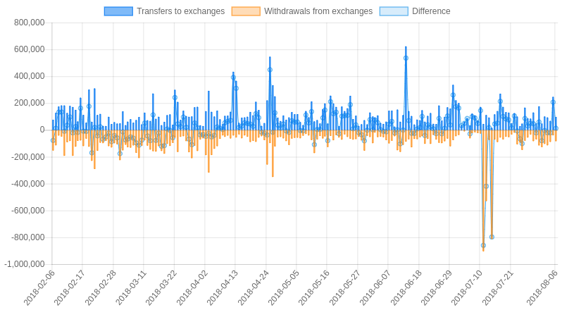 | Date | Transfers to exchanges | Withdrawals from exchanges | Difference |