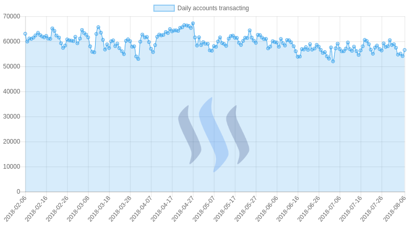A 'transacting account' is a Steem account that made at least one transaction on the Steem blockchain. This can be a vote, post, comment, transfer, power up or sbd conversion. Users who only read from the Steem blockchain without interacting are not included. The actual number of 'Active users' is therefore much higher than the accounts transacting.