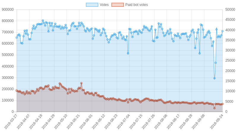 | Date | Votes | Paid bot votes | Percent bot votes |