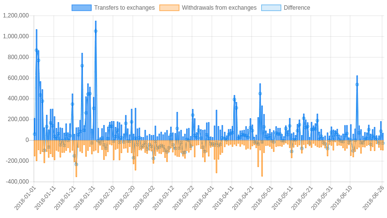 | Date | Transfers to exchanges | Withdrawals from exchanges | Difference |