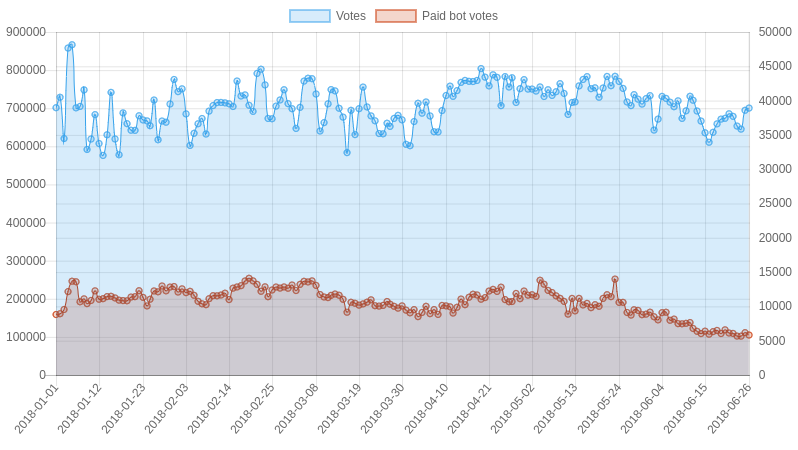 | Date | Votes | Paid bot votes | Percent bot votes |