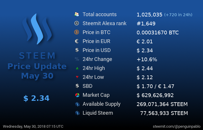 Welcome to my Steem Stats Report for Wednesday, May 30, 2018. All data comes directly from the Steem blockchain and is based on UTC time.