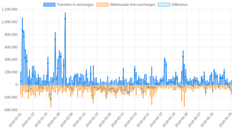| Date | Transfers to exchanges | Withdrawals from exchanges | Difference |