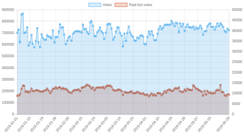 | Date | Votes | Paid bot votes | Percent bot votes |