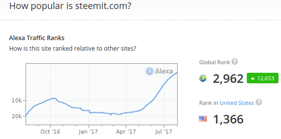 Very steep upwards curve showing on the Alexa ranking for Steemit.com!