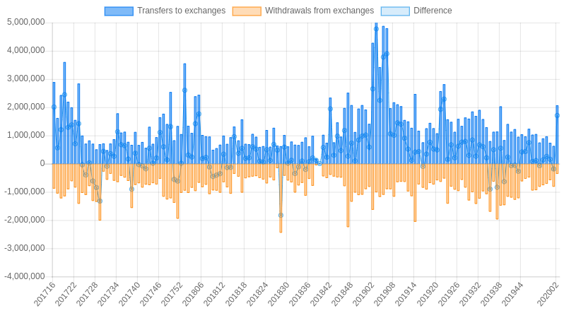| Date | Transfers to exchanges | Withdrawals from exchanges | Difference |