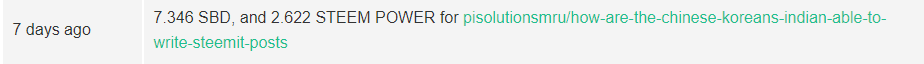 So far so good. For this post, I had chosen the default payout and hence half was converted automatically to Steem Power and we could see that I got 7.346 SBD and 2.622 Steem Power.