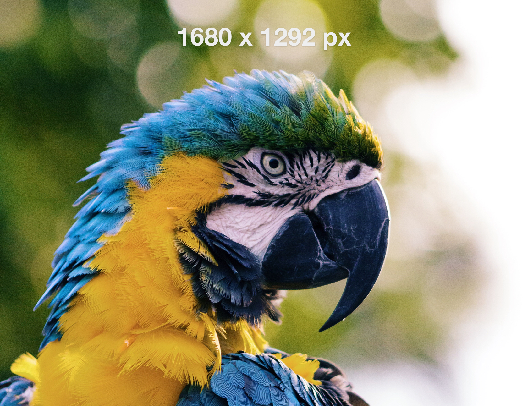 Here are two examples. If you have a high resolution screen, you’ll probably notice that the second image (840px) is slightly blurrier. Look at the blue feathers at the bottom.