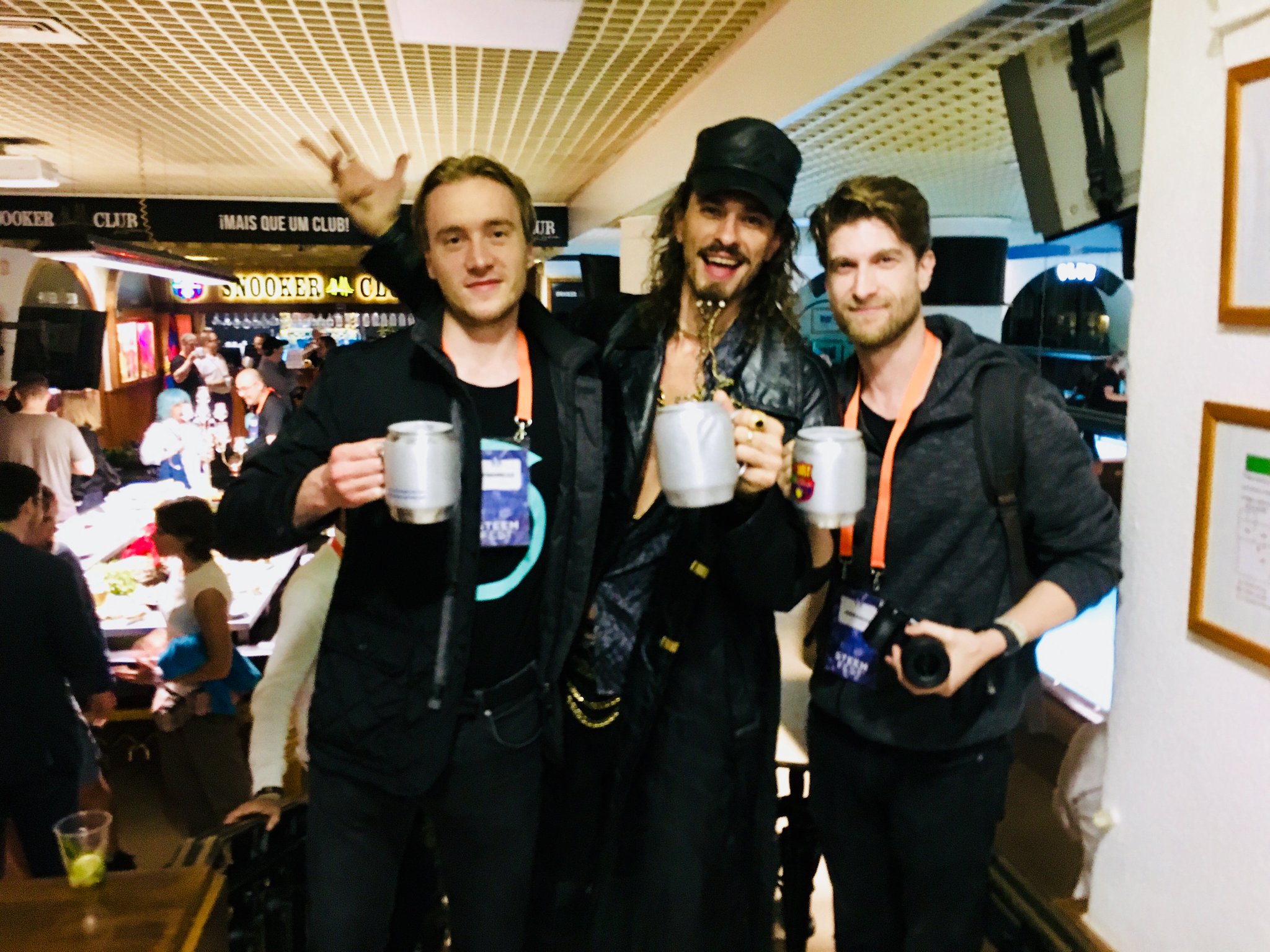 At SteemFest day after party at the Snooker club drinking draft brew in huge frozen metal mugs with @andrarchy