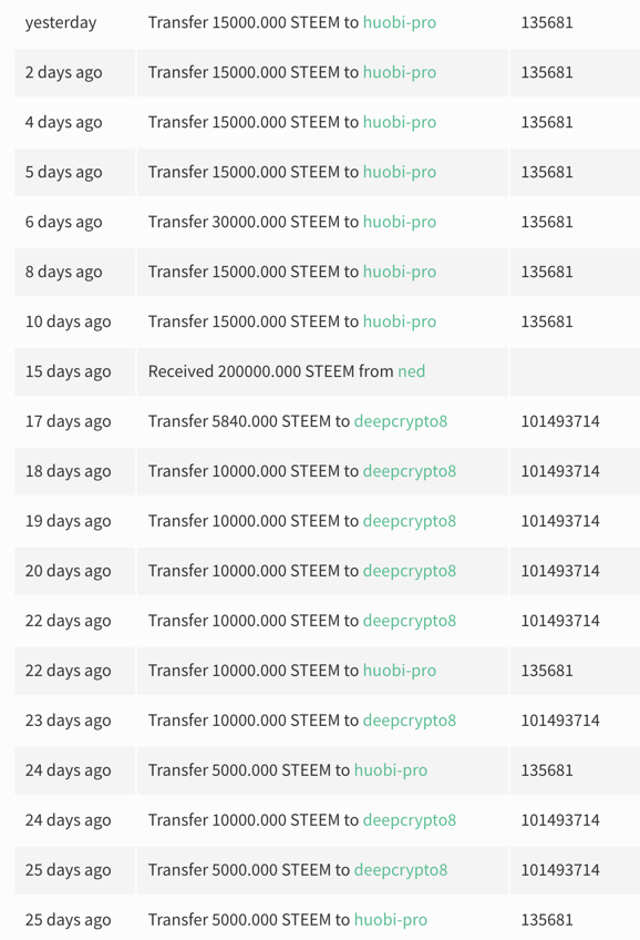 Now I'm just speculating here- I suggest that you do your own research. Does @ned sense the end and is abandoning his own ship? One thing I do think- I don't think we're going to see the prices we did last December when Steem topped $10.00 again. The more @ned pulls large chunks of Steem out of the game, the lower prices will be held. How long before the other whales follow suit? Frankly, I'm more than just a little bit worried about the future of Steemit.
