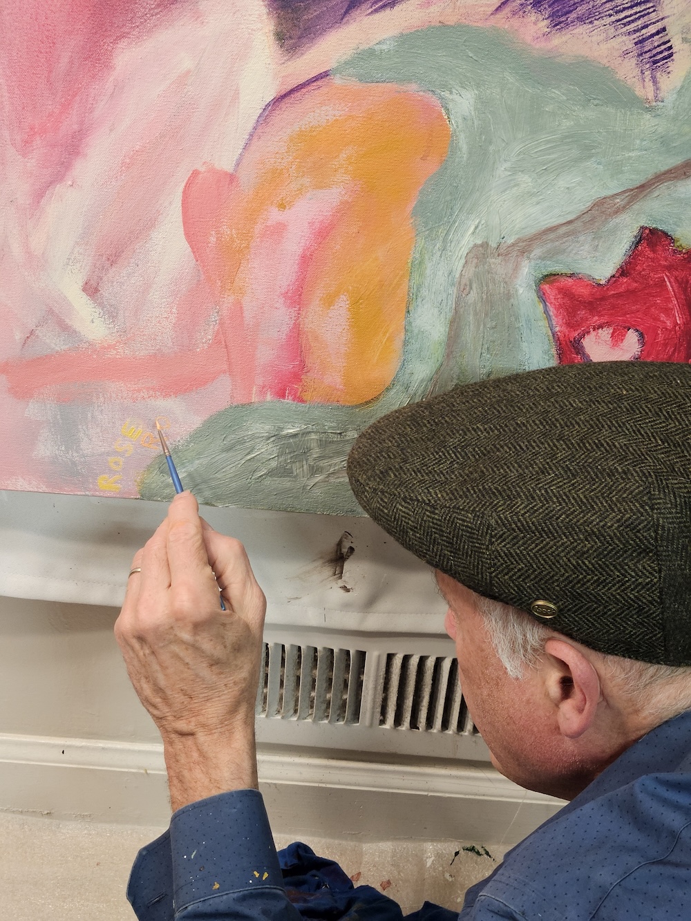 Enter Ron and Rose taking on their new roles of visionary marriage counselors. We promised to work together on a series of large paintings this winter, ones to sell, to give us hope that we can break out of the slave mentality sooner than later. Paint together to imagine change while staying put. Collaborate like we did long ago, during the discovery phase of a new relationship, choosing the insecurity of life, without a clue as to what tomorrow would bring. Those who get old in the traditional manner, know exactly what tomorrow will bring. That is precisely not art. I no longer want to live like a retired man who paints, while waiting for Rose to retire from a job that has become a rapidly replicating cancer of routine. Still, we need an income if we wish to remain married. Compromise will find a solution eventually, and together we have initiated the process with these paintings. You can help our freedom by finding us some walls to hang them on. Preferably walls within a ten mile radius of clumping millionaires. Even the rich want to be married, I’m sure of it. They will get the concept, adore the story, and pay us for our time, art and vision with the purchase of these beautiful paintings.