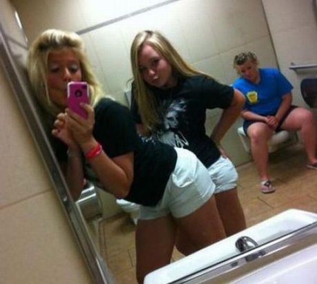 This picture can be shown as an example of the quote, “Real friends will always be there for you” even though the “real” friends decided to take a selfie while the other one sat on the toilet looking completed depressed. Both girls don’t seem to bothered so it’s safe to say that this was indeed a fail and not a purposely taken photo. Next time either don’t take a selfie near your friend who is clearly having a bad day or just be careful to not get her in the picture. Just move or ask her to lean the other way. Is it that difficult to do? Or better yet, go and tend to your sad friend who looks like she clearly needs a hug.