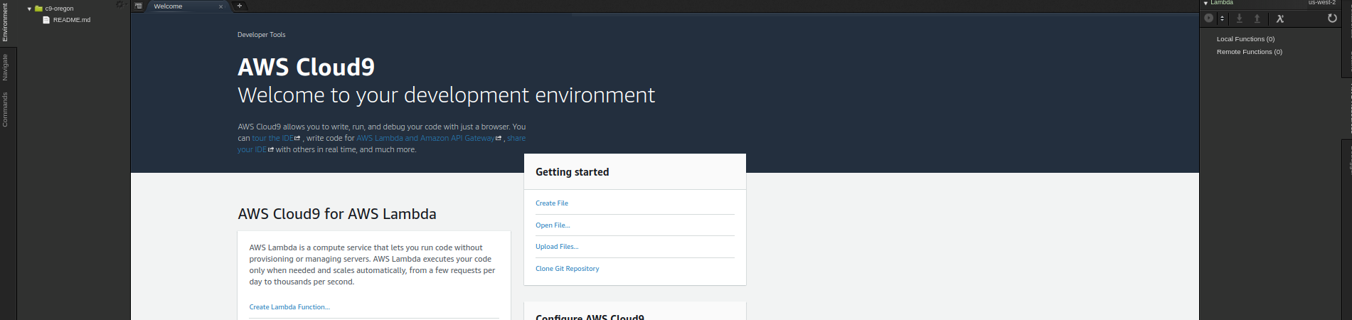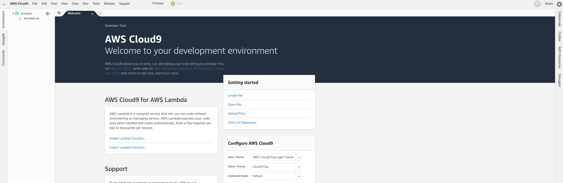 #3 In your Cloud 9 instance you will want to configure a new Lambda function. You start this by clicking the "AWS Resources Tab"