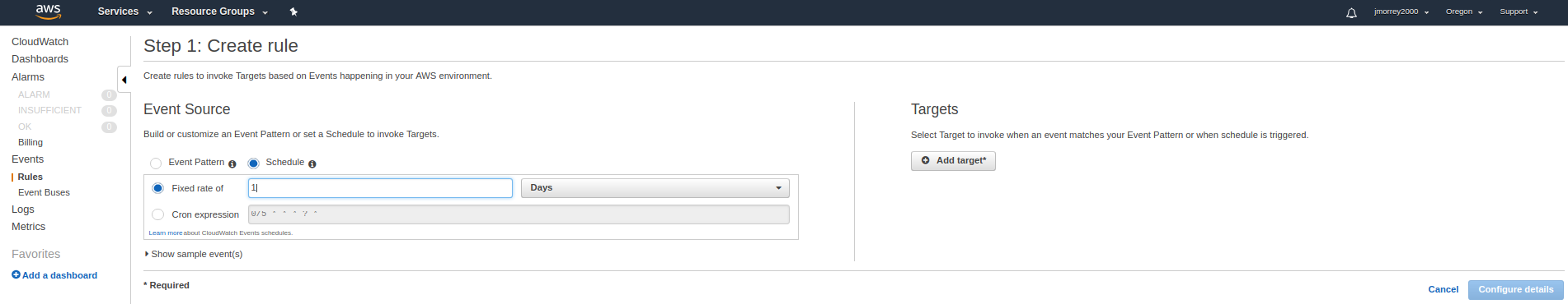 Now we just need to set the target which is our lambda function