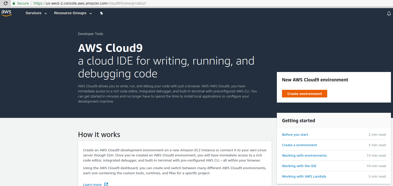 #2 once your AWS account is created you will need an IDE. I used to use VS Code and serverless, but I've found Cloud9 to provide a superior workflow for the way we are building this. So go ahead and spin up a Cloud 9 instance.