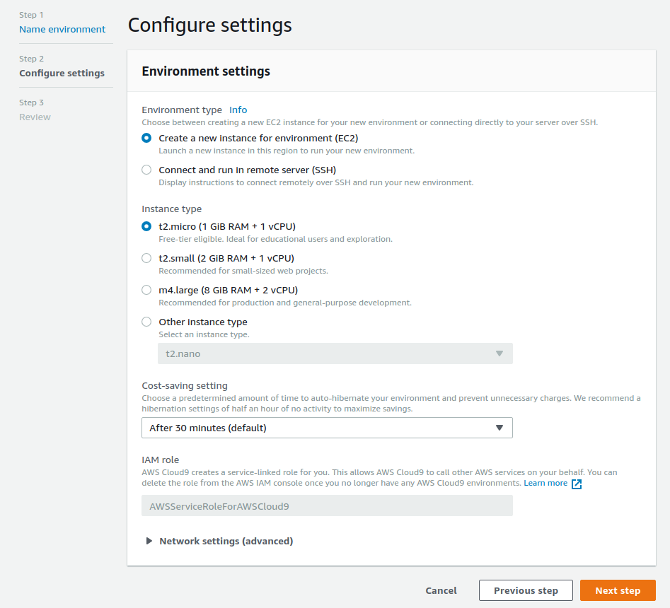 We're building Lambdas and only using this environment to test if they will run. Lambdas are pretty resource constrained so let's just go with defaults here, they're more than enough for our purposes.