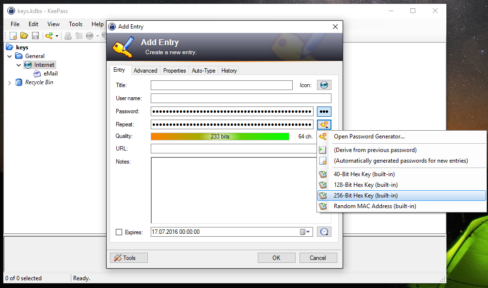 Secure password with KeePass