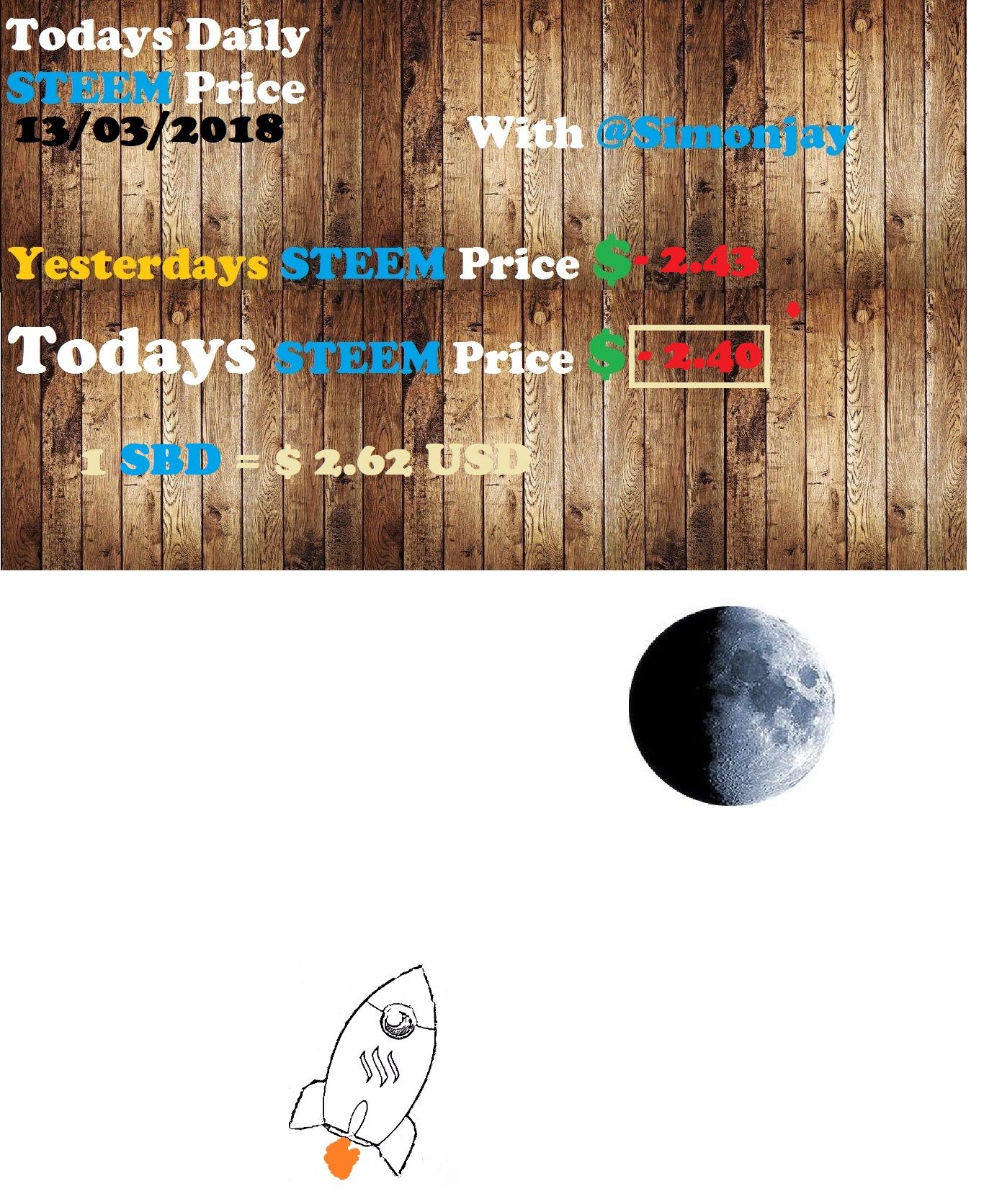 Good day Steemian welcome to todays Steem price update for 13/03/2018 I have been posting the Steem price update again everyday since I attended the SteemFest 2 which during that time I was too busy to post.