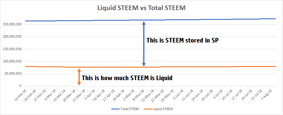 Liquid STEEM is the remaining STEEM that has not been converted into Steem Power. (Orange Line)