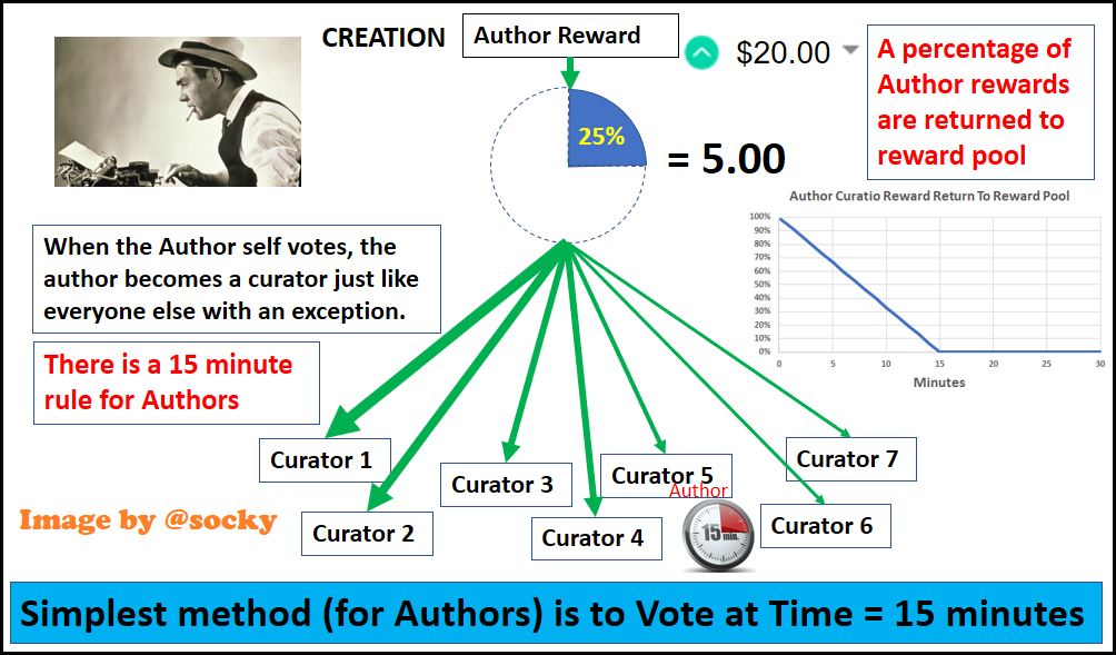 If the Author votes before 15 minutes, some portion of the author's curation reward is returned to the voting pool. This encourages the author to wait at least 15 minutes which gives everyone else a chance to vote on the blog to get a larger percentage of the curation rewards.