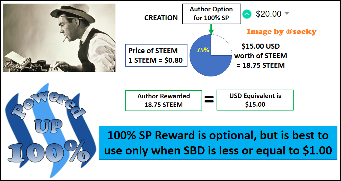 100% reward option is good when SBD price is at or below $1.00 price. The returns are essentially the same and this option really depends on if you really want SP vs SBD.