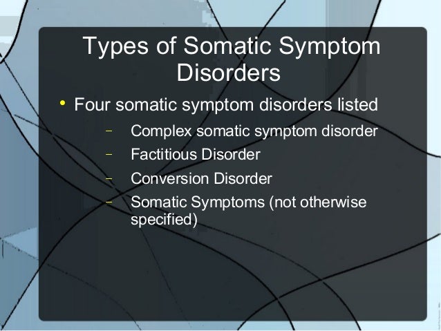 Somatization disorder (also Briquet's syndrome) is a mental disorder described by recurring, multiple, and current, clinically significant complaints about somatic symptoms, although it is no longer considered a clinical diagnosis. It is a mental disorder, persay. One that drains you mentally and physically. Those that have it, aren't making up their symptoms; they usually are manifested in the mind and made worse through hypochondria, stress, and anxiety. I suffer from this disorder, and I can tell you first hand it really holds you back.