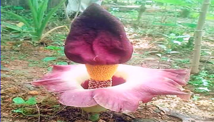 Pada saat perjalanan penjelajahan ke dalam hutan rombongan Arnold kebingungan dengan adanya bau busuk yang muncul di sela semak belukar (Hutan tersebut saat ini terletak di Manna, Kabupaten Bengkulu Selatan). Betapa terkejutnya para anggota rombongan ketika mengetahui bahwa bau busuk bangkai yang mereka cium ternyata berasal dari sebuah bunga besar yang tengah mekar.