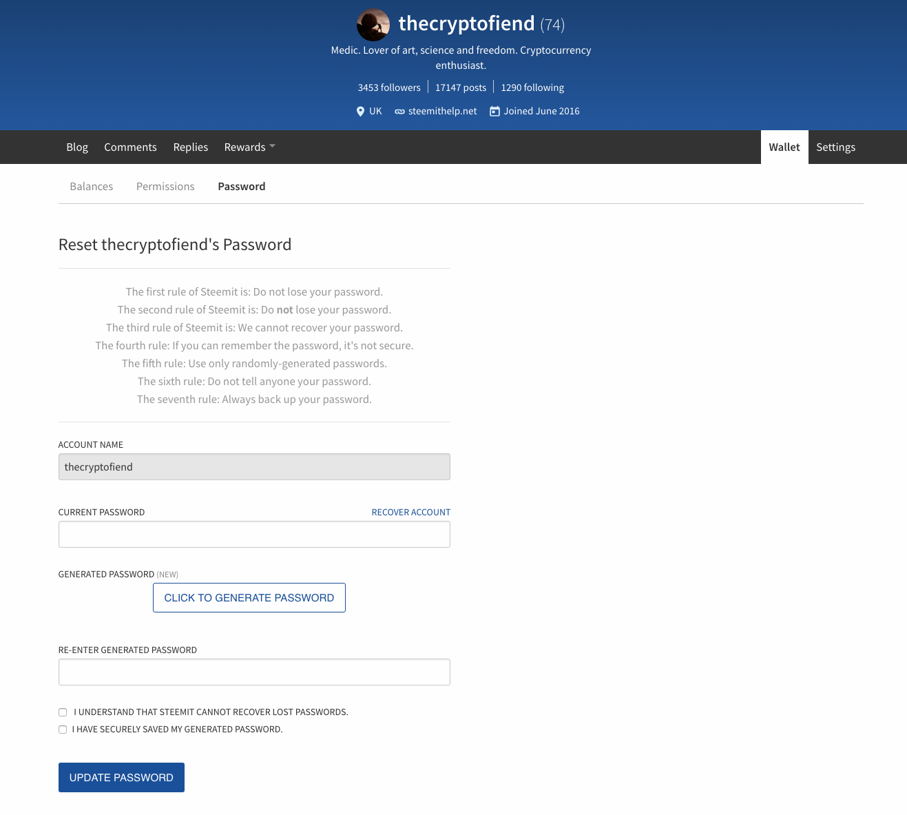 The second rule of Steemit is: Do not lose your password.