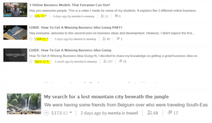 My most successful post 'how to get a winning business idea going' made me 406SD and 4.9 STEEM POWER. 3 days later,