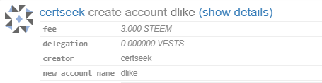 I travelled back to the very first action on the account and see it was an account claimed by "dlike". So I travelled back to the first action for that account. I see there that "certseek" paid 3 Steem to create "dlike".