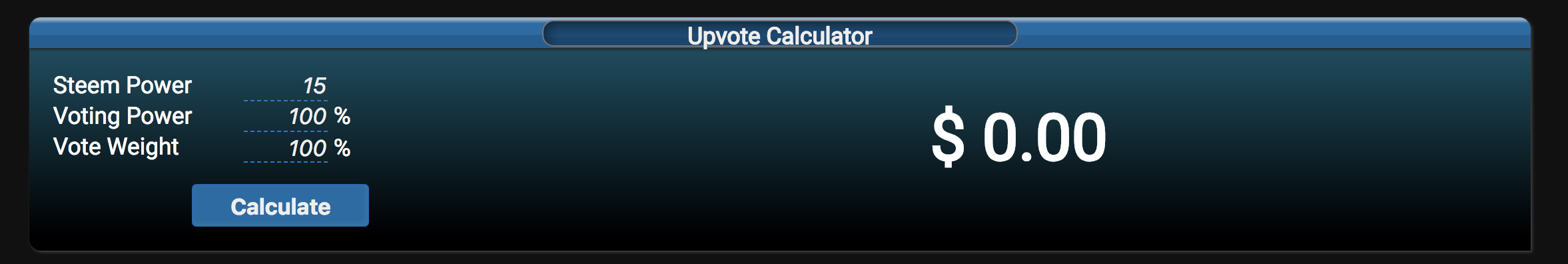 First you need to input the Steem Power, next the Voting Power percentage and lastly the Vote Weight. This tool will calculate your voting power on the right. Here is a screenshot of the tool.