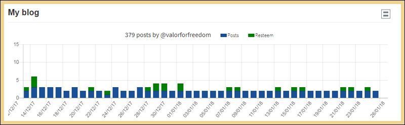 So far that amounts to once daily or less. I'm all for supporting the authors I like, but have no desire to spam, and dislike it when I am spammed . . . which is why I've pretty much deep-sixed Facebook and the rest of social media in favor of Steemit