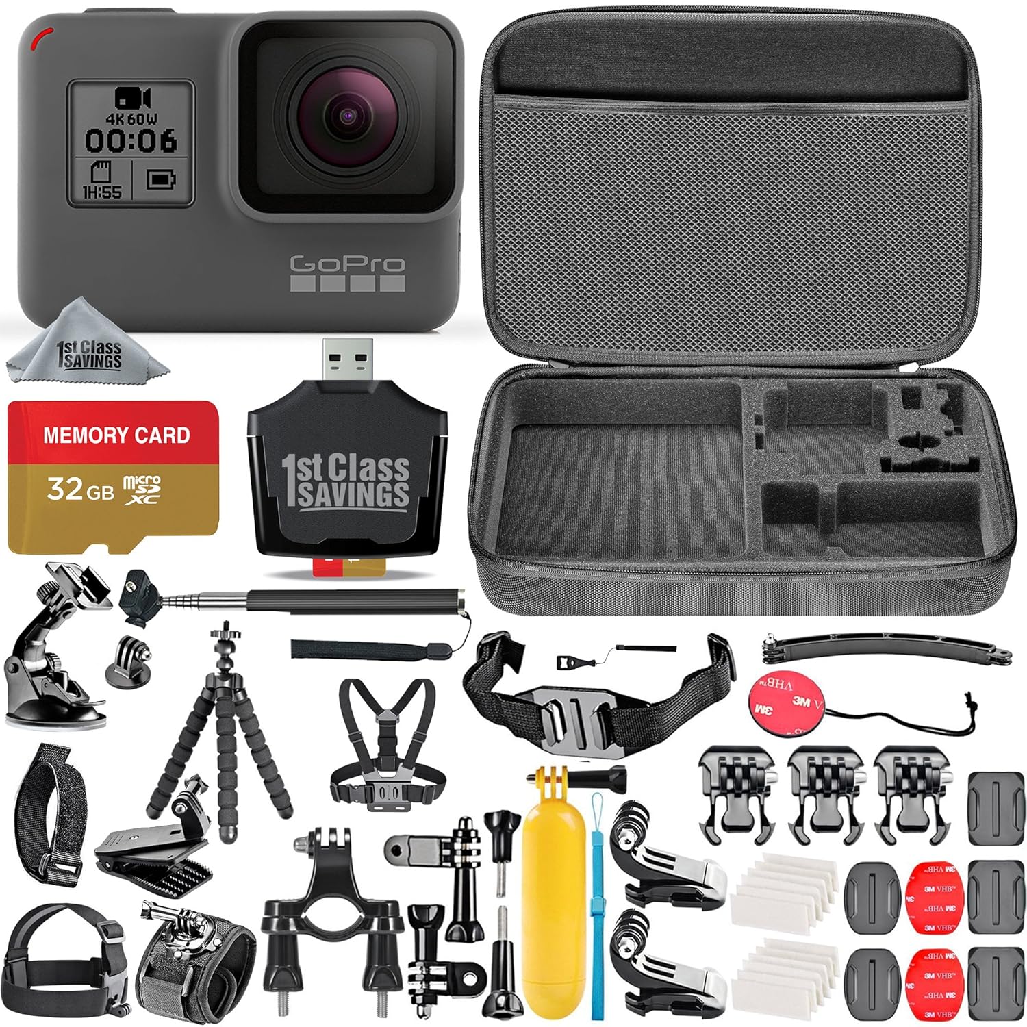 Included with the kit I got at Best Buy for $999 USD was the backpack/case which has a mount on one of the shoulder straps for the GoPro Hero6 camera. A Stick to mount the camera and gimble on that is POWERED and has controls for the camera on the stick.....converts Hero 6 into a studio quality movie camera.....2 extra propellers, and a free 32GB Sandisk EXTREME MicroSD card. Manufacturer says it has a 20 minute flight time on 1 hour charge (with no camera attached) but I believe it is longer than that in real life. I flew it for 2 minutes 36 seconds after I took off and started recording and the battery still says it is "fully charged" and that was with the camera and gimbal installed and in 20+ mph winds. I didn't try flying it any distance away but if I had it might have lowered the battery life faster as it would have had to amp up the RF signal to a higher transmission power. I also wasn't flying at full speed due to the wind and not wanting to loose control.