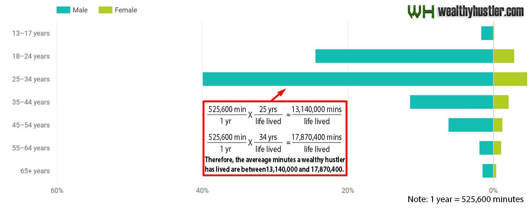Let's first start off with Wealthy Hustler's official Youtube demographics & super duper math skills.