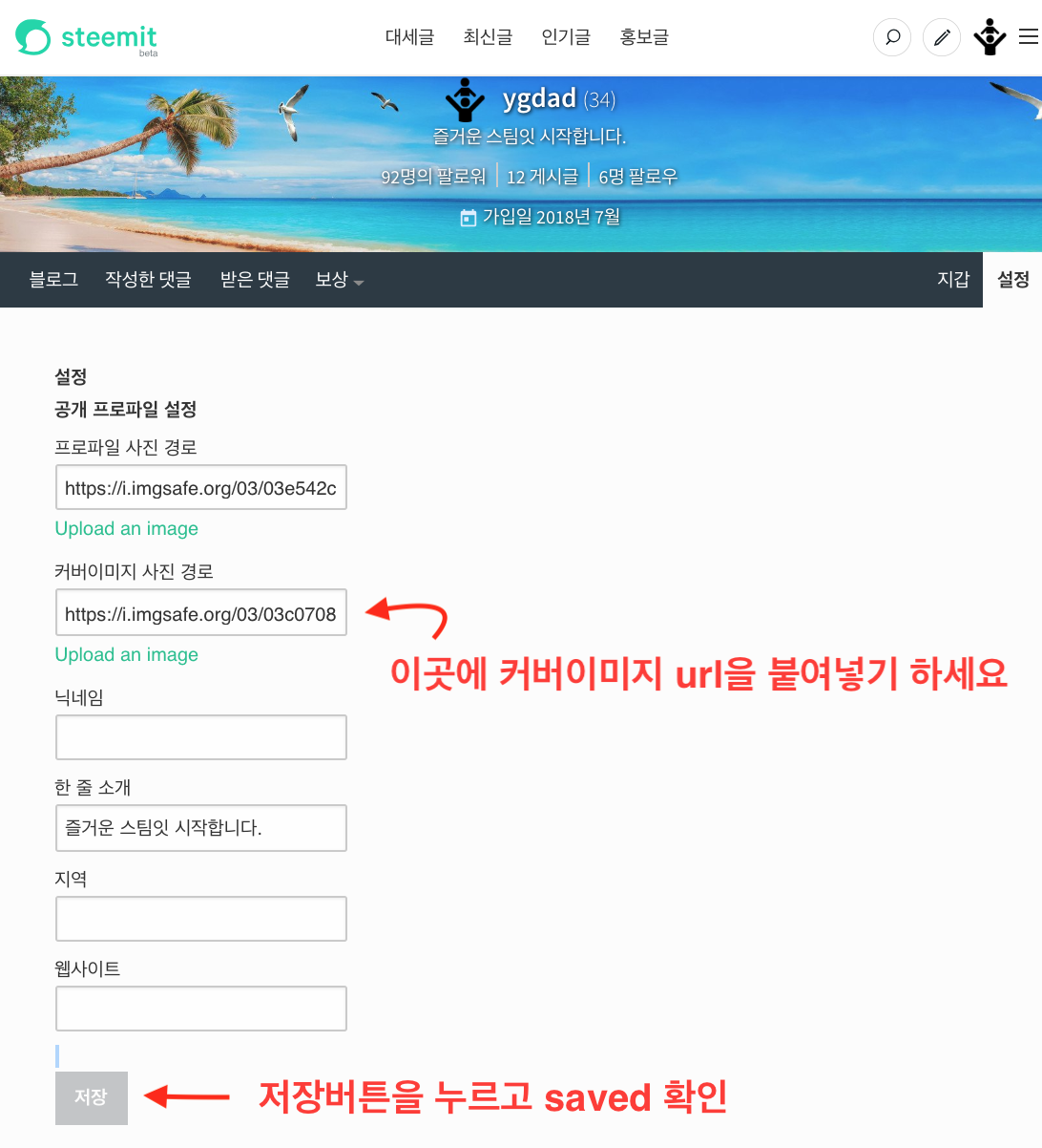 스팀잇 프로필사진, 커버사진 변경하는 방법
