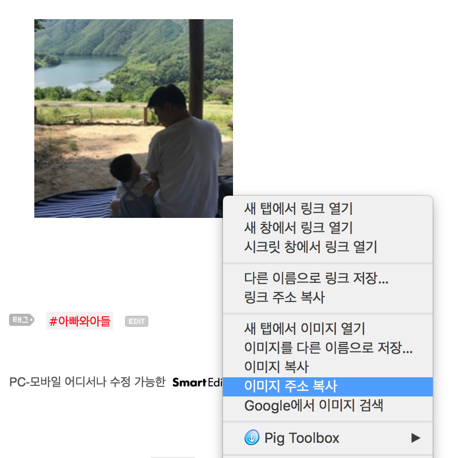 방법1) 개인블로그에 사진을 올리고 이미지URL을 복사한다.